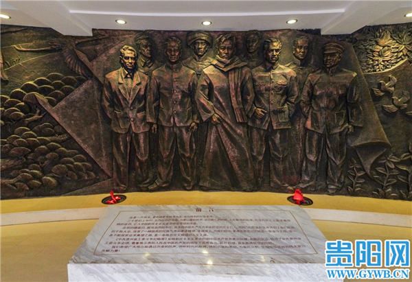 序厅内,正面浮雕墙是以省工委重要历史人物为原型创作的,展示了几代省工委领导带领全省人民对党的伟大事业执着追求并为之奋斗的风貌,给我们留下了灿烂辉煌的业绩。两面的浮雕墙则是以省工委的重要活动为依据创作的,右面墙上展示的内容是抗日战争时期省工委领导社会团体积极抗战的场面,左边墙上展示的是临近解放,中共贵州地下党组织领导贵阳大中学校掀起的反饥饿运动和国民党在溃逃之前垂死挣扎,制造的震惊全省的“双十一惨案”。