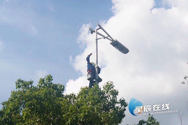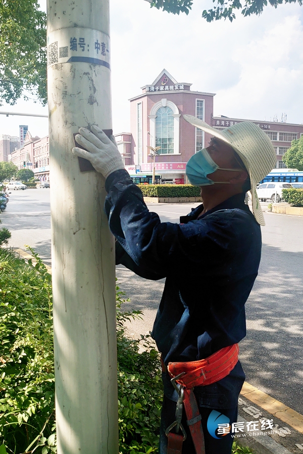 长沙城管深入推进“我为群众办实事”实践活动 为城市路灯涂上“新装”