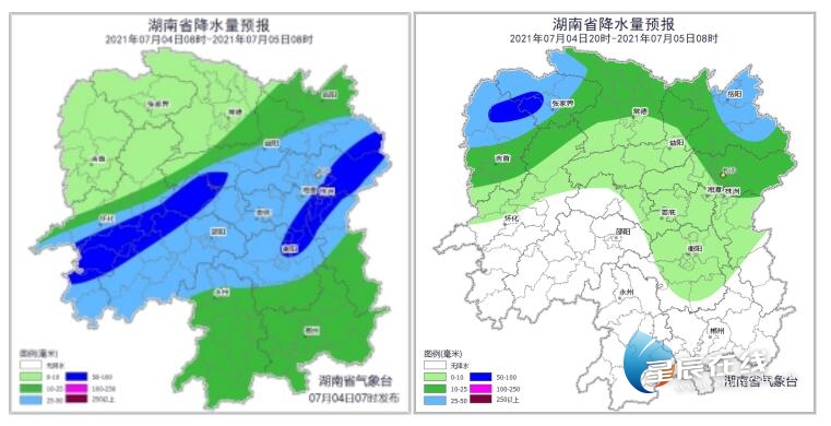 湖南逐12小时雨量预报(左:4日白天,右:4日晚上)