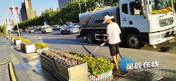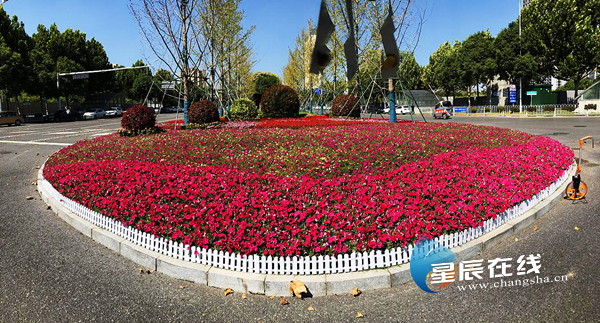 (为迎接国庆长假的到来,长沙市雨花区园林绿化维护中心对重要节点及绿化工程项目积极开展栽花和摆花工作。)