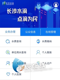 关注“长沙水业96533”微信公众号,可通过菜单栏“长沙水滴”进入首页,主要设置“业务办理”“公众信息”“在线受理”3大模块,包含账户管理、网签合同、查询缴费、个人过户、个人低保、个人报装、个人集群报装、单位报装、单位集群报装、单位新增接水点、单位普票申请、专票设置、水质公告、故障报修等20余项功能。目前,“长沙水滴”基本可实现长沙水业集团供水直接用户主要业务办理全覆盖。同时,客户也可以在线上营业厅上快速查询办理进度和办理结果。