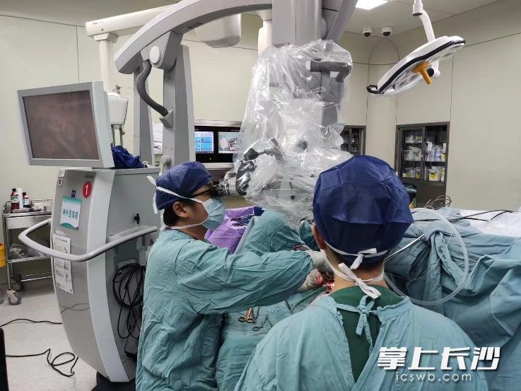 中南大学湘雅二医院神经外科医护团队正在进行手术。医院供图