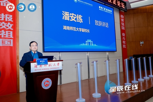 湖南师范大学潘安练副校长在致辞中深情回顾了学校医学教育的发展历程。他特别强调了当前“校友回湘”工作所面临的重大战略机遇,诚挚表达了学校期待与广大校友同心同德,共同打造医教协同、产教融合创新典范的愿景。