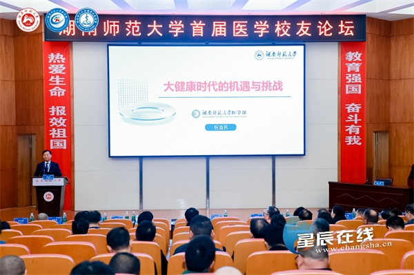 星辰在线12月6日讯(星辰全媒体记者 彭穗 通讯员 杨雅茜 熊永通 黄鸿剑 邓光祁)冬日星城,暖意涌动;湘江之畔,贤才云集。12月6日,湖南师范大学医学部气氛热烈,以“校友回湘,聚贤汇智,医路相伴”为主题的首届医学校友论坛在此举行。600余名来自全国各地的“回湘”的医学校友、医学领域专家学者及师生代表齐聚母校,共叙乡情友谊,共谋发展大计。这是湖南师范大学积极响应湖南省委、省政府“校友回湘”号召的生动实践,标志着学校在凝聚校友力量、推动医学教育与医疗事业高质量发展方面迈出坚实步伐。