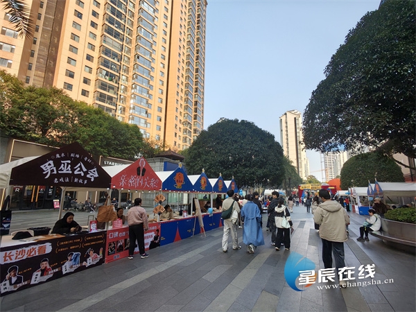 同时,本土小剧场市集集结了来自长沙的10-15个活跃项目,涵盖喜剧、悬疑、亲子剧等类型,演职人员在现场与观众互动,并配套展出文创衍生品,为城市文化消费注入更多新鲜选择。非遗摊位中的湘绣、剪纸、糖画等展示,则让传统手艺在现代商业空间中实现新的焕新表达。