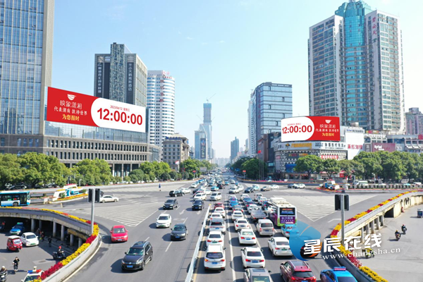 嘀、 嘀 、嘀……随着秒表不断地跳动,又一个整点到来,长沙芙蓉双屏联动同时展现“映象潇湘代表湖南,款待世界,为您报时”画面。直观明了的传播内容+独树一帜的品牌高光时刻,牢牢锁定过往人群眼球。