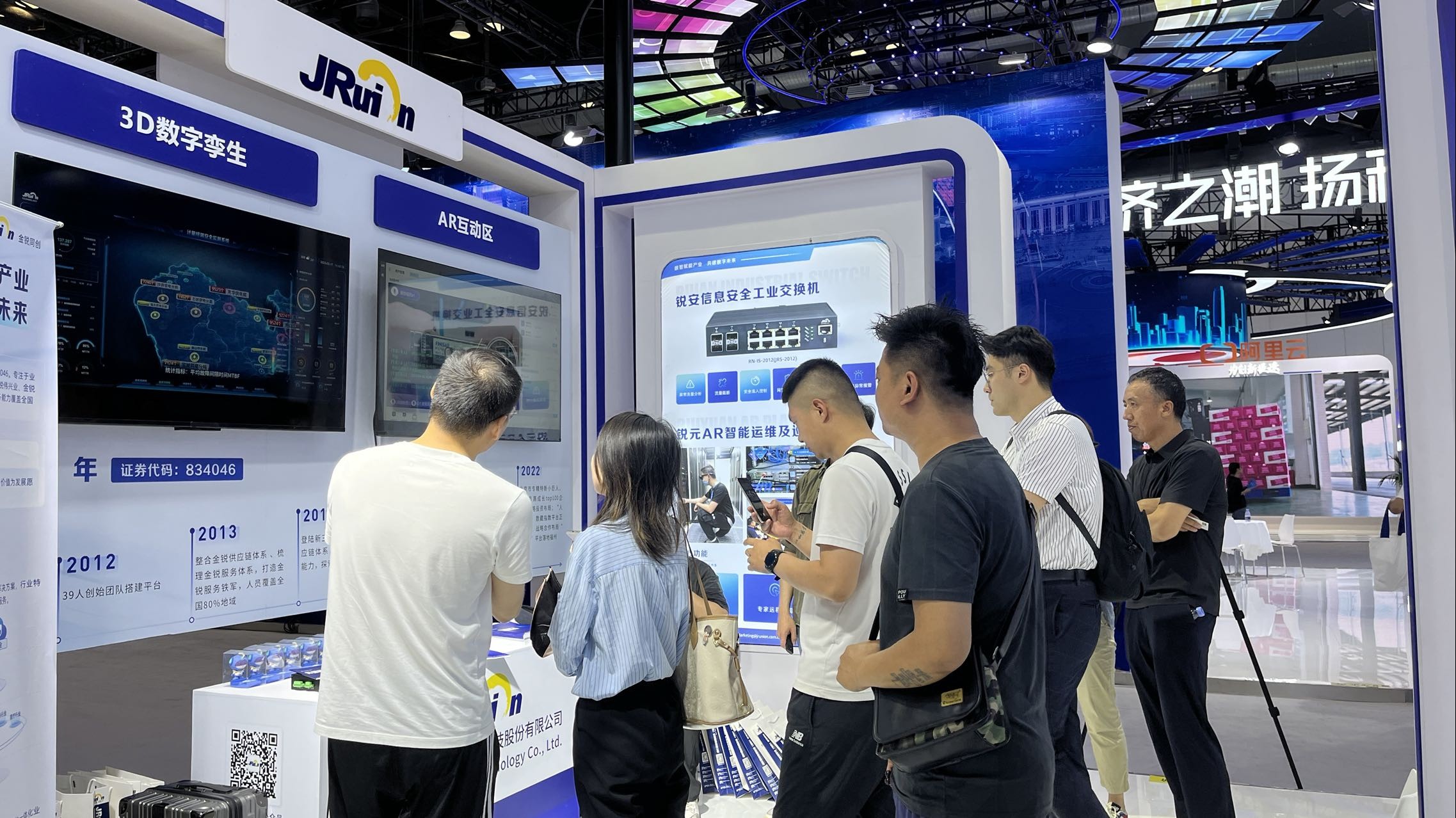 此次展会上,金锐同创特设AR交互体验区和3D数字孪生区,展出自研核心产品,锐元AR智能巡检系统、锐云3D可视化管理平台、锐云性能可视化管理系统、锐安信息安全工业交换机等前沿技术产品。吸引了多权威媒体争相报道,现场嘉宾积极互动体验。