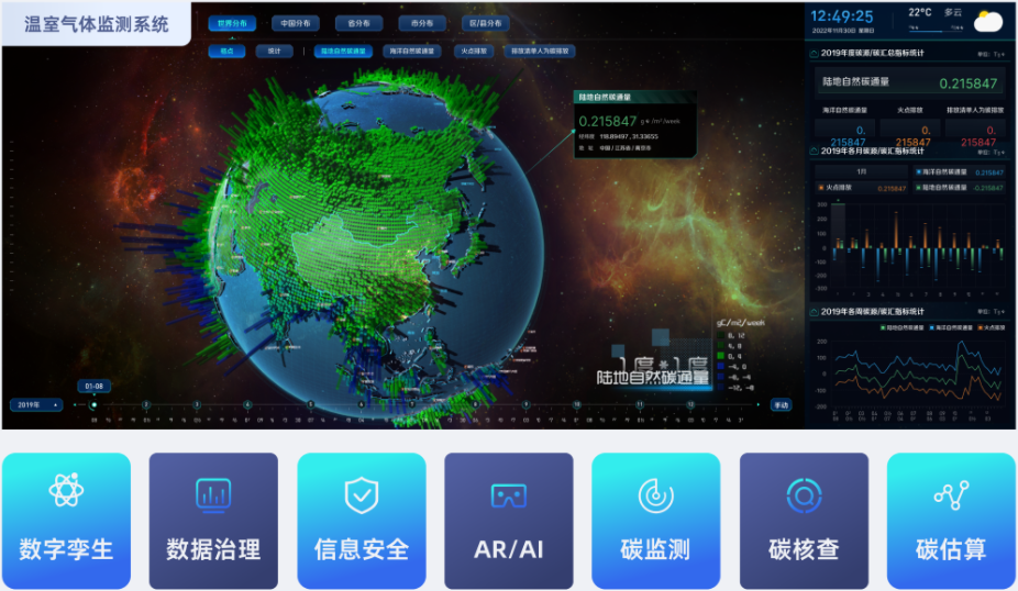 金锐同创联合中国气象科学研究院就“碳中和”监测与展示技术,建立了我国第一个1公里尺度、自上而下反演大气二氧化碳源汇变化数字赋能系统。该项目获得相关技术发明专利10余项,并入选2022年国家气象部门十大优秀管理创新案例,打通“碳中和”产学研对接“最后一公里”。