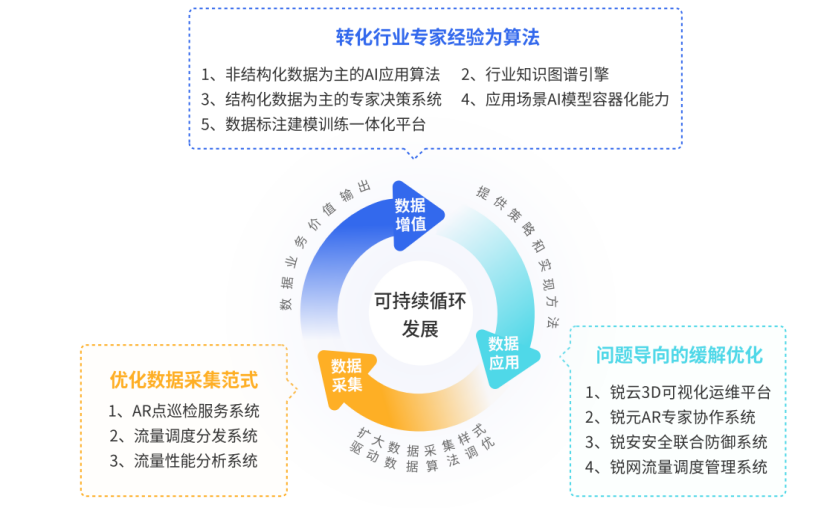 金锐同创依托自研能力,结合优势供应链体系及深入行业业务的服务体系,以“BDES业务数据赋能”系统为基石,通过持续打磨提升产品能力,赋能“云、网、元、安、数、智”六大产品体系,打造产/研/落地一体化业务闭环,从产品服务到解决方案,从核心技术到商业场景落地全面覆盖,以创新领先的产品及方案赋能客户。
