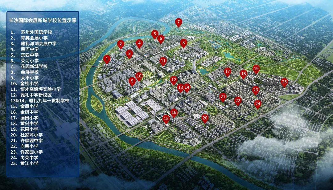 片区内共有25所学校,教育资源规划密度位列全市片区前列,优质均衡教育新格局正在逐步形成。许家园小学、博才高塘坪实验小学、育英会展小学、雅礼洋湖会展中学等已开学;另有江苏名校苏州外国语学校进驻开学。