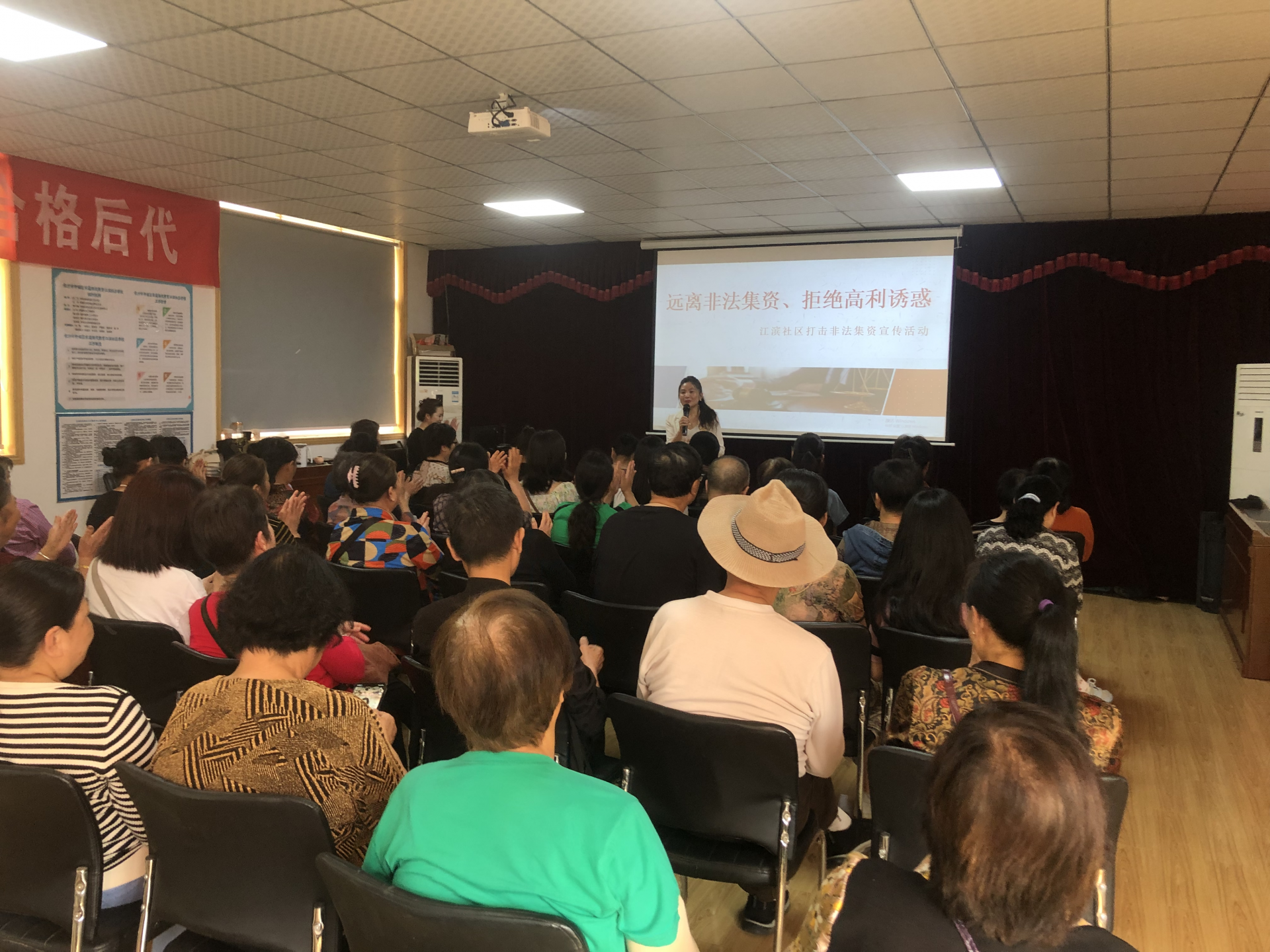 长沙江滨社区开展“远离非法集资、拒绝高利诱惑”防电诈宣传知识讲座