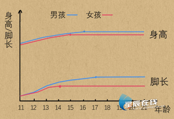 其次,脚的生长发育停止时间要比身高更早。女孩子约在13~15岁,男孩子约在16~18岁,但身高一般是在17-20岁左右。所以,在孩子的脚停止生长之后,有些孩子的身高还会继续生长。