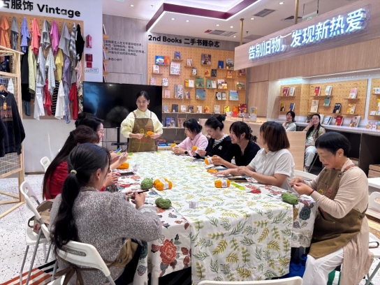 除了实用的循环服务与互动,特色文化活动也为此次主题活动增添亮点。长沙荟聚联合宜家家居、Conner Shop 、Happyzero、长沙市春蕾康复中心等合作伙伴,在旧物新所举办黑胶音乐会、“用毛线绕个循环生活”工坊、公益钩织工坊等活动,在音乐间隙分享环保理念,将闲置家居品与彩色毛线结合,制作出独一无二的 “新朋友”。