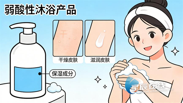冬季皮肤易干燥,应选用弱酸性、含保湿成分的沐浴产品,减少刺激。