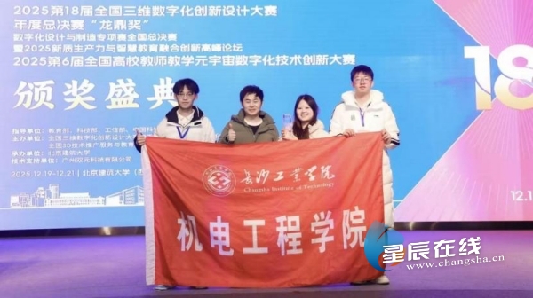(长沙工业学院学子在第18届全国三维数字化创新设计大赛获全国一等奖,创下湖南省参赛院校在本届赛事中的最高成绩。)