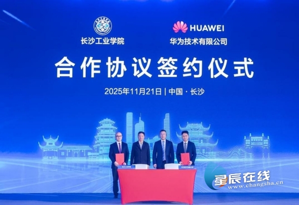 (长沙工业学院与华为技术有限公司合作签署了数智工业现代产业学院共建协议。)