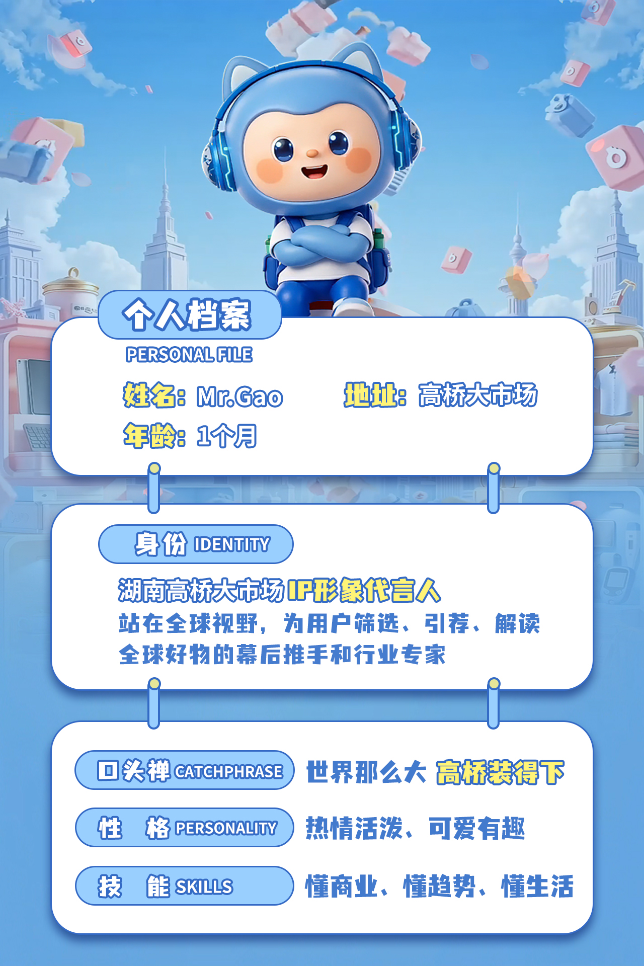 随着 IP 形象正式发布,「Mr.Gao」将全面登陆湖南高桥大市场线上线下全域场景。