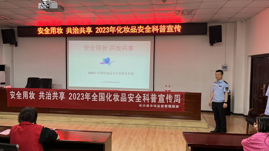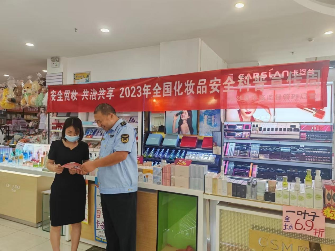 5月22日-28日,长沙县市场监督管理局开展“安全用妆,共治共享”2023年长沙县化妆品安全科普宣传周活动,推动化妆品宣传进商场、进社区、进学校等,进一步提升公众对化妆品安全和合理使用的认知水平,推动化妆品安全社会共治。