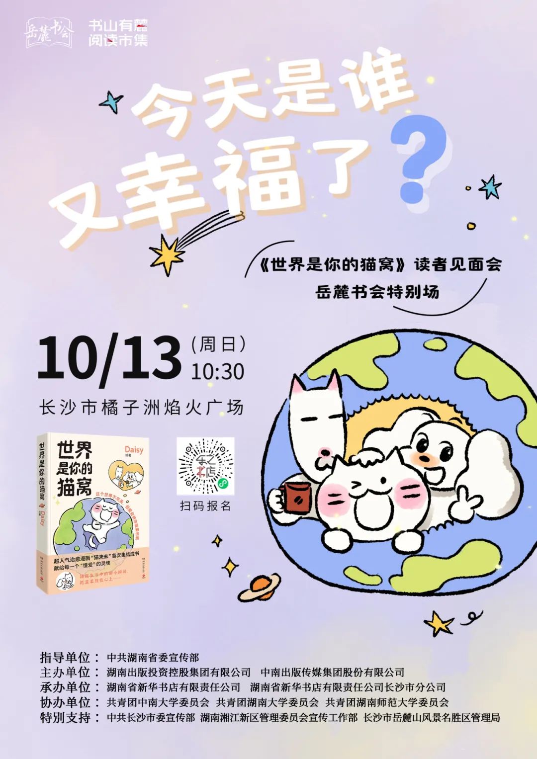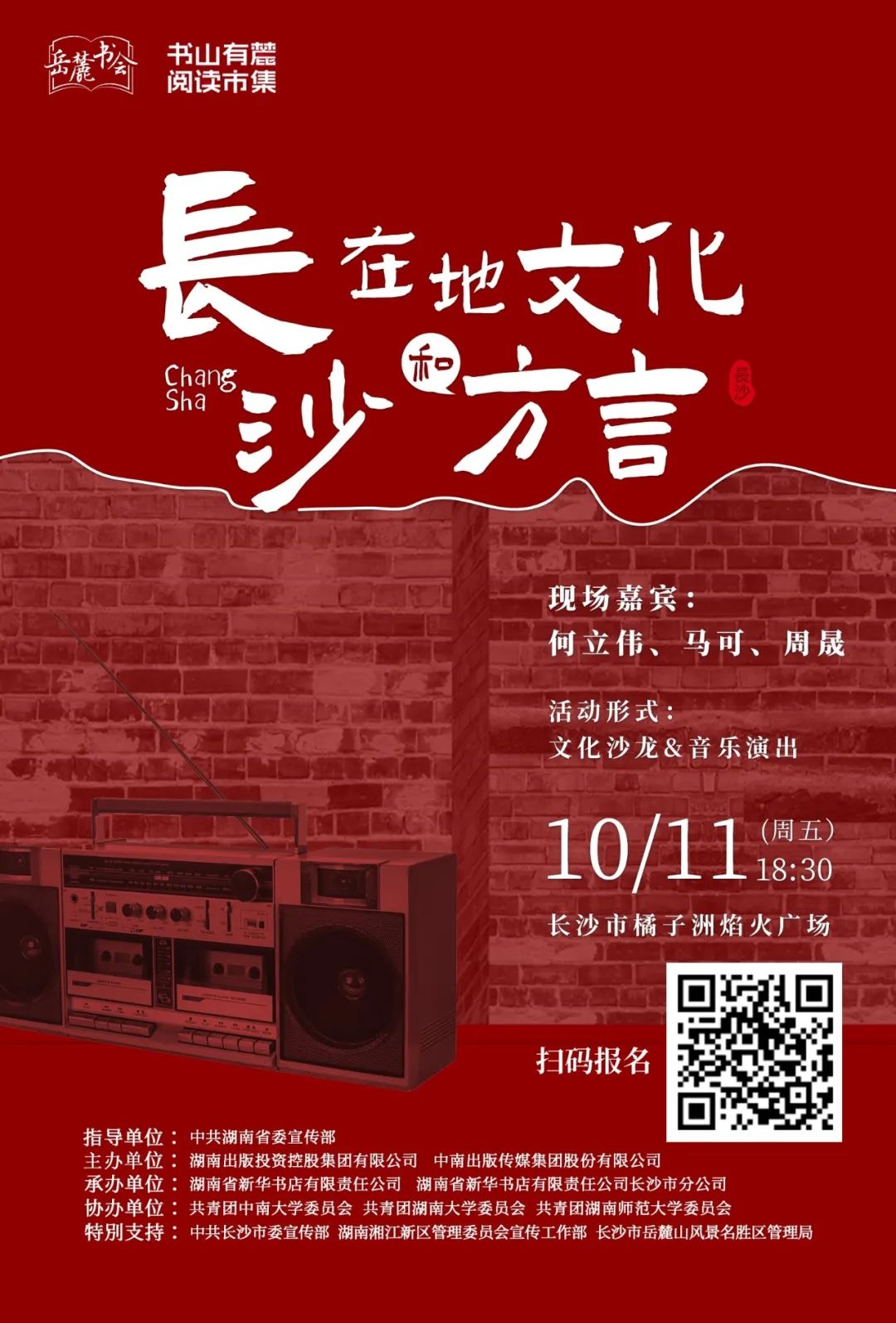 此次岳麓书会由中共湖南省委宣传部指导,湖南出版投资控股集团、中南出版传媒集团主办。书会以“阅读新时代 创造我精彩”为主题,以“为好书找读者、为读者找好书”贯穿其中,通过一场“文化+科技”创新融合的开幕式、一个书香漫卷的阅读市集和九大丰富多彩的主题活动,打造一场紧密链接读书人、写书人、编书人、荐书人的文化盛宴。