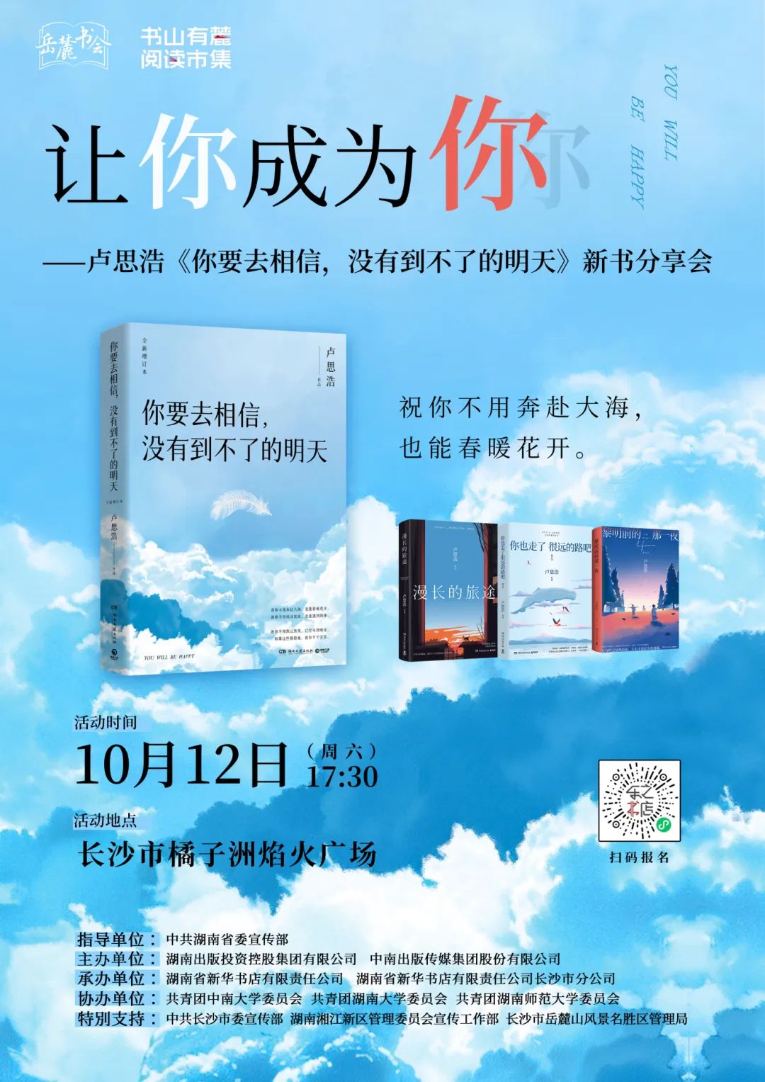 以好书会友,让图书与人们更好地相遇。我们盛情邀请您和朋友们一起在“书山有麓 阅读市集”拾级而上,邂逅一场集精品书市、作家分享、潮流文化和创意打卡为一体的文化雅集。
