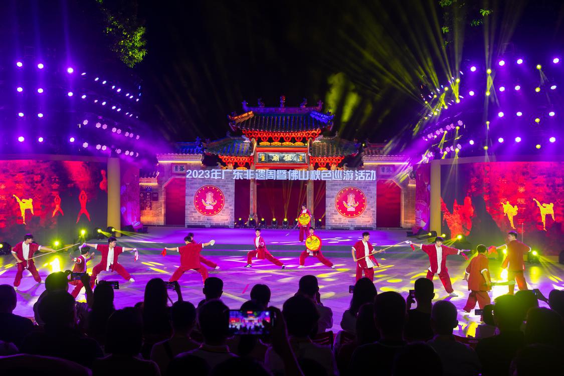 2023年佛山秋色巡游,一群来自佛山市黄飞鸿文武学校的学生,以一连串前空翻、太极、刀剑、南派北派武术表演惊艳全场。