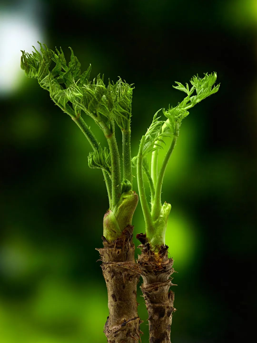 刚生出的刺嫩芽模样儿略萌,胖嘟嘟的茎,刚刚舒展开片片浅绿色的嫩芽,这也是刺嫩芽最好吃的时候,芽身最肥美鲜嫩,入口有一股属于山野菜的特别清香。