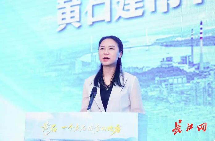 (黄石市委常委、宣传部部长王玲在启动式上致辞。长江网记者彭年 摄)