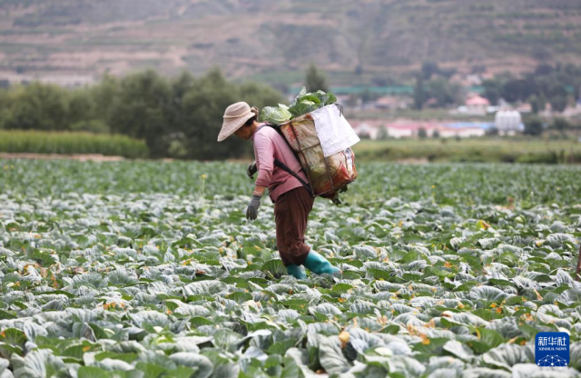 8月22日,甘肃省定西市安定区香泉镇农民在背运蔬菜。