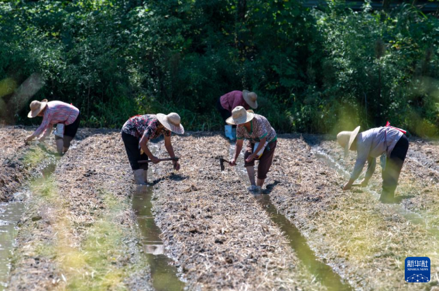 处暑节气将至,农民抢抓农时开展农事劳作。