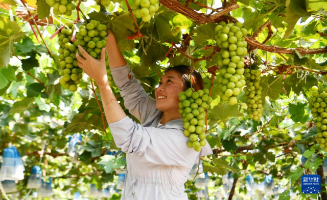 8月22日,在山东省枣庄市台儿庄区邳庄镇涛沟桥村,农民采摘葡萄。