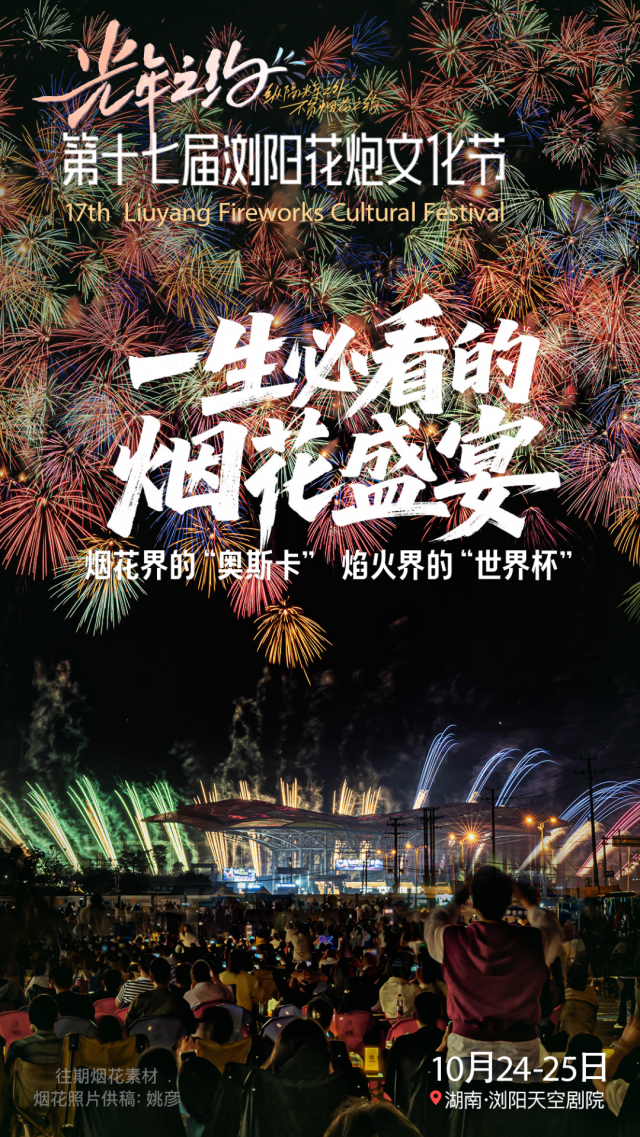 第十七届浏阳花炮文化节定档2025年10月24日至25日,据组委会介绍,这不是常规的浏阳周末烟花秀,而是汇聚全球烟花最新创意,集合行业最新产品与最新技术的顶流盛会。