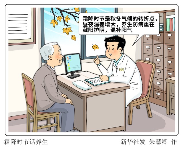 “霜降时节还可采用多种中医药适宜技术应对常见健康问题。”湖南中医药大学第一附属医院脾胃病科主任徐寅举例,艾灸关元、足三里、肺俞等穴位能温通经络、扶助阳气;对于“秋燥”引起的咽干、皮肤干痒,可按揉列缺、照海等穴位以缓解不适;用艾叶、红花等药材煮水泡脚,还可促进气血循环,祛除寒湿。 (新华社记者田晓航、帅才)