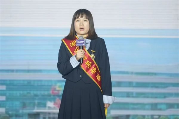 湖北省劳动模范、武汉华星光电技术有限公司车间管理助理工程师邵双讲述自己从职业教育的受益者成为传播者的经历,引发在场职工的共鸣。