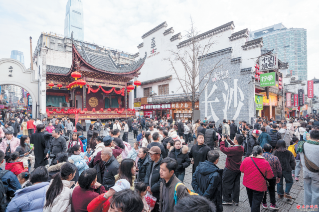 这个春节,长沙的街头挤满了人。