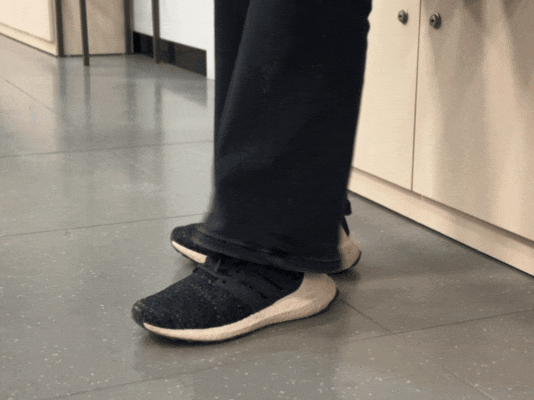 坐在有直背及把手的椅子上,将脚跟置放于地上,然后尽量以最大幅度及最快速度,脚趾拍地10次。